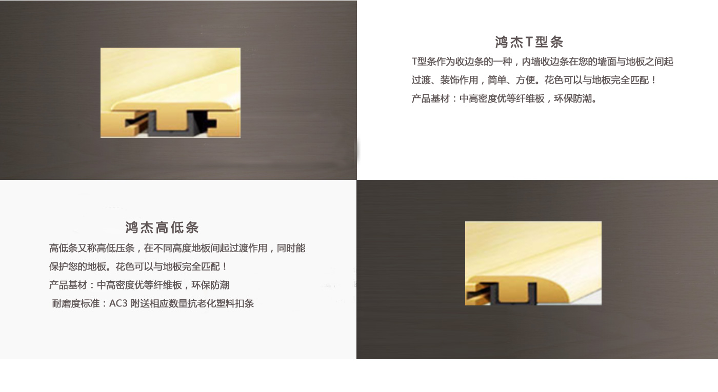 專業(yè)生產(chǎn)各類地板輔料。本廠成立于2008年,經(jīng)過嚴(yán)格的質(zhì)量控制,已開發(fā)出SPC、WPC、層壓板三種不同的壓花材料。每一種材料都有超過7種不同的過渡型材,如t型線、減速器、端蓋、四分之一圓、樓梯前鼻、樓梯板、踢腳板等。    SPC和WPC是我們的新產(chǎn)品,在世界各地越來越受歡迎。各種造型將達(dá)到您的個性化需求,100%匹配您的SPC, WPC或乙烯基地板的顏色。     我們的傳統(tǒng)產(chǎn)品——層壓板是世界領(lǐng)先的產(chǎn)品之一,具有熱壓耐磨層加工技術(shù),高溫高壓。其質(zhì)量可靠,品種齊全,經(jīng)久耐用,耐磨,使層壓板成型經(jīng)久不衰。     我公司不僅與國內(nèi)一些大型、信譽(yù)良好的地板生產(chǎn)廠家和代理商建立了長期的合作關(guān)系,產(chǎn)品還出口到臺灣、日本、菲律賓、美國、加拿大、非洲、澳大利亞、歐洲等國家和地區(qū)。 歡迎來廠參觀、洽談業(yè)務(wù)。